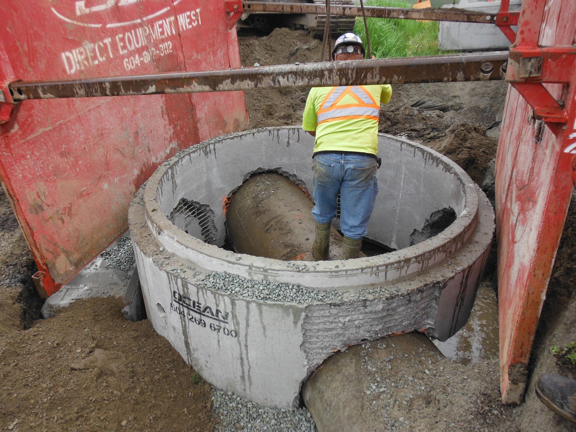 There were 2 live sanitary tie ins that needed to be completed on highly active lines that made for some great planning and execution. Concerns of soft ground and ground movement during preloading provided for a fully restrained watermain construction that also had cathodic protection. The intersection of 104th st and hwy 17 had recently been constructed and opened to the public. The local trucking group had desperately needed intersection improvements to expedite their pick ups and deliveries to CN intermodal and we were more than happy to facilitate new turn lanes for them to improve their turning movements in the intersection.