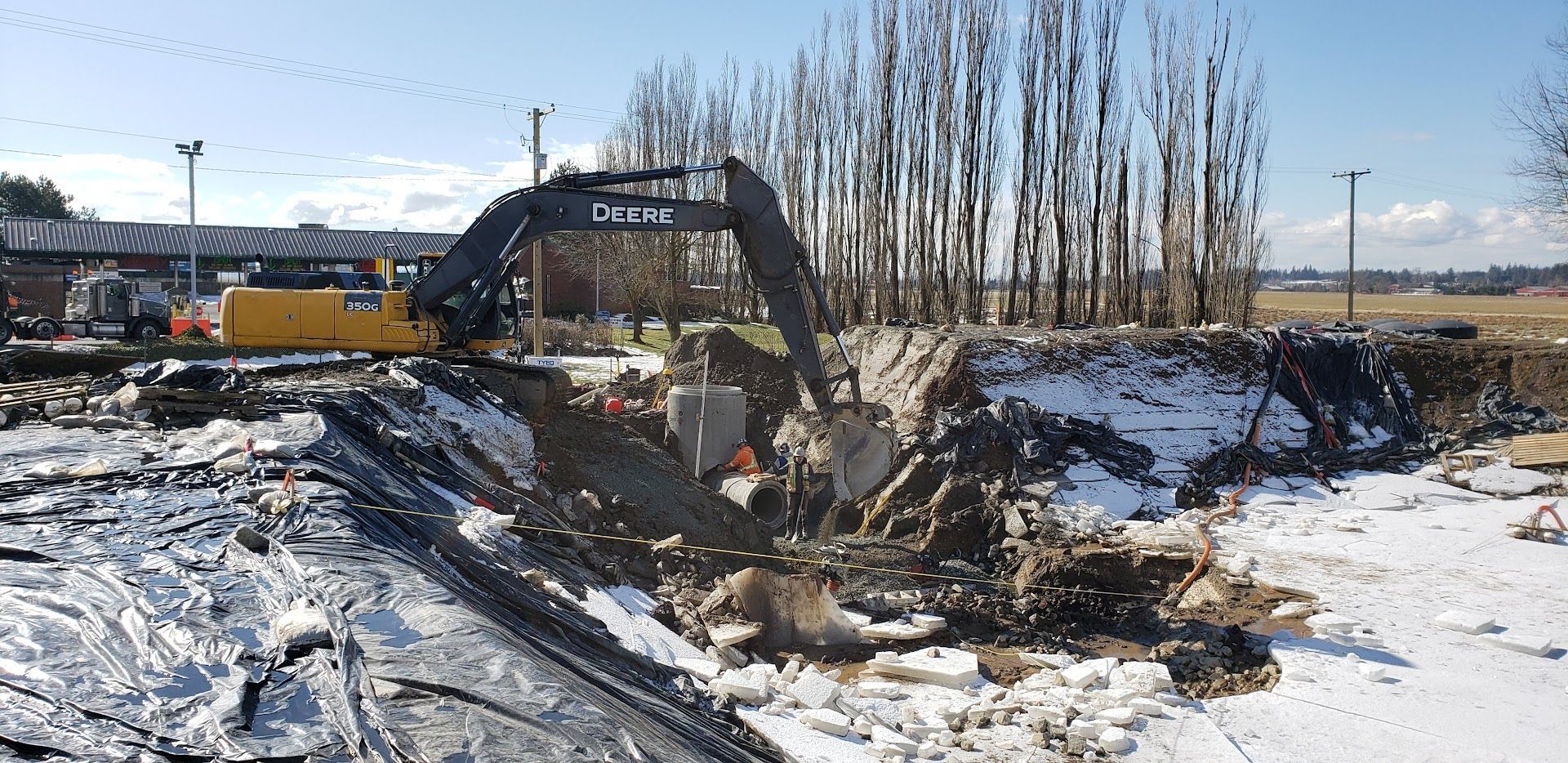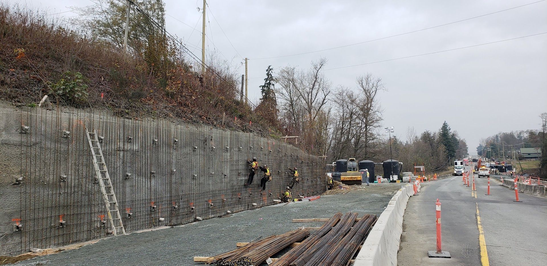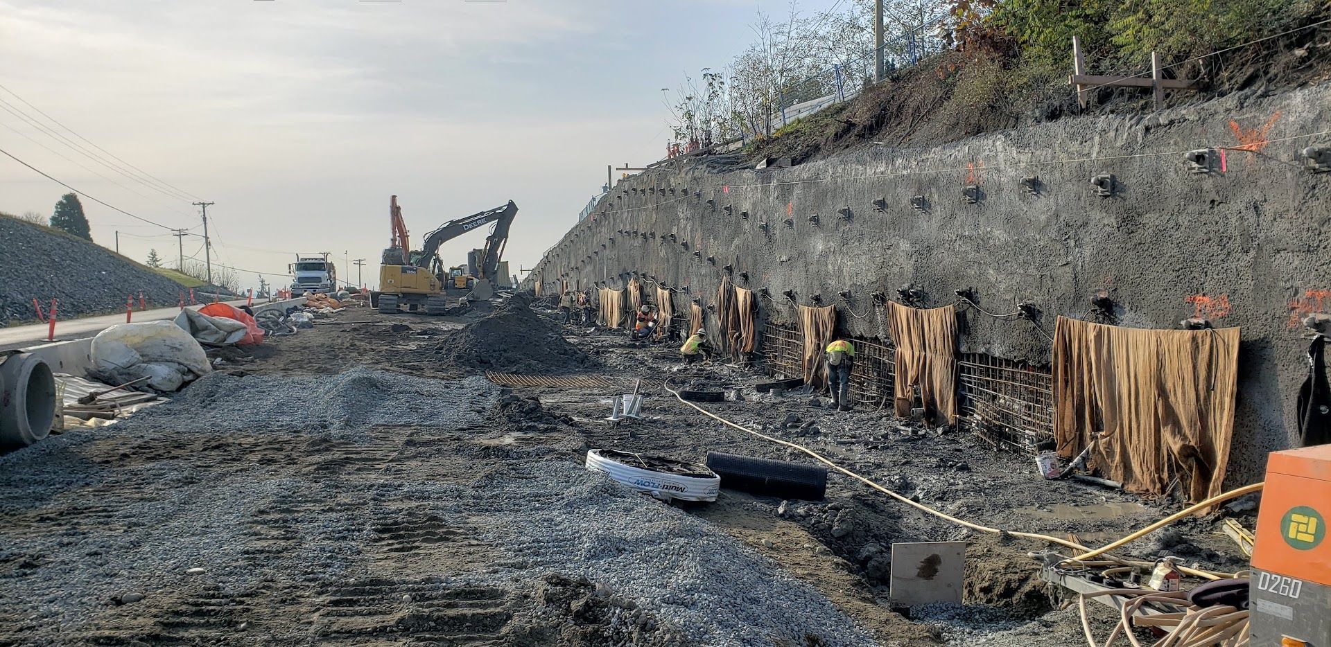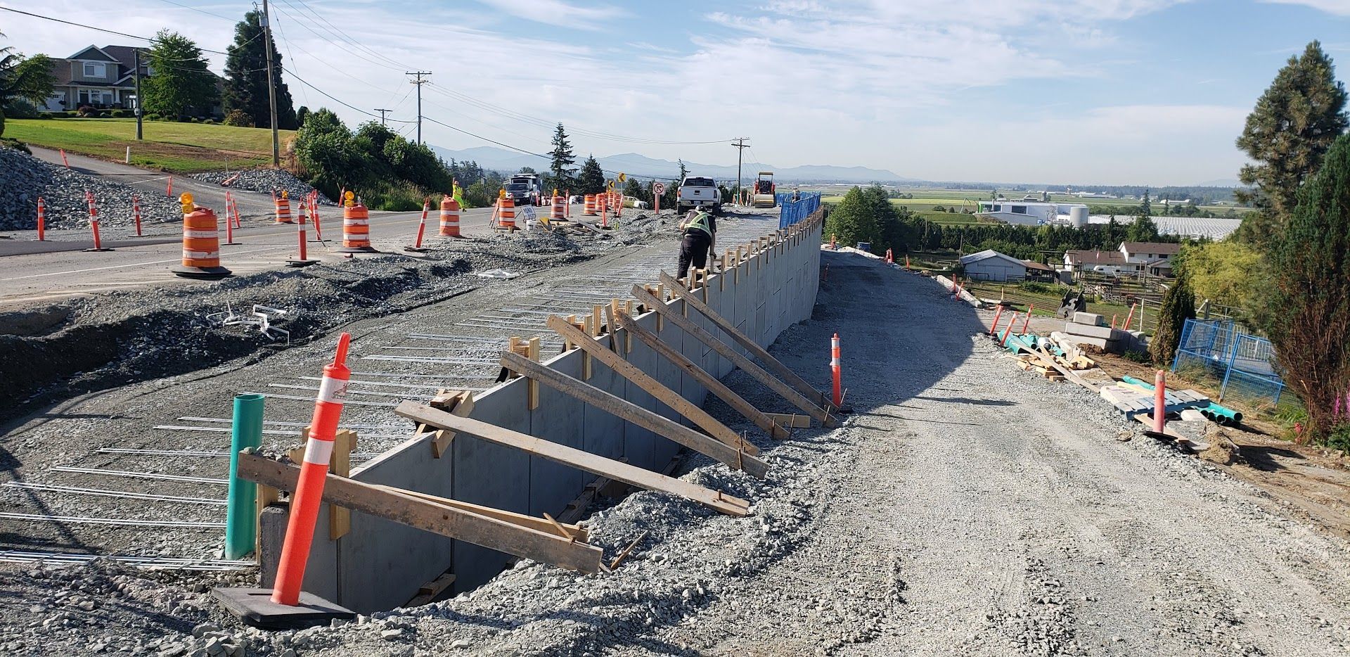 As the project was surrounded by farm land, it was important to not lose its value to infrastructure development. The solution was to communicate and canvas local farms and help them increase their potential by moving valuable topsoil from the project footprint to their farms. Based on the lay of the land, there was a lot of water to be generated by increasing the asphalt surface area on a 1km slope. The development of ditching and a large detention pond with a flow control manhole helped to reduce the impacts of water on the surrounding area. With all the different contours, it was important to construct some larger curved walls to ensure the lanes could be widened safely. Some of these walls conflicted with a large forties line which was relocated as part of this project. There was a new intersection created at 3b avenue to improve the safety of through traffic in the area. There was a 2-stage shotcrete wall constructed to maintain existing driveways adjacent to the shotcrete wall.